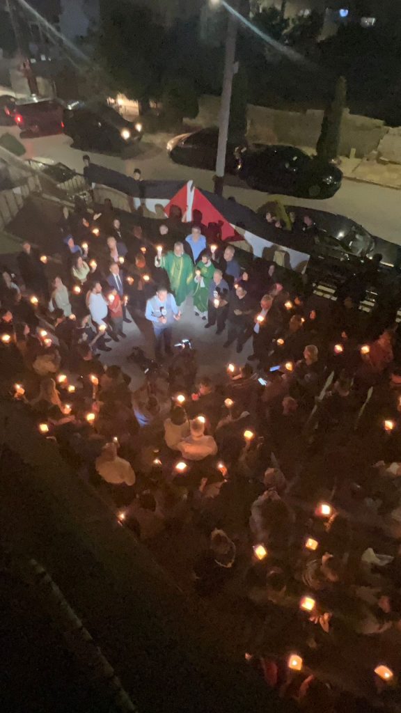 نظم المركز الكاثوليكي للدراسات والإعلام، بالتعاون مع كنيسة قلب يسوع للاتين في تلاع العلي،مساء السبت، وقفة صلاة وإضاءة شموع من أجل أرواح الشهداء ومن أجل السلام في غزة وسائر فلسطين.