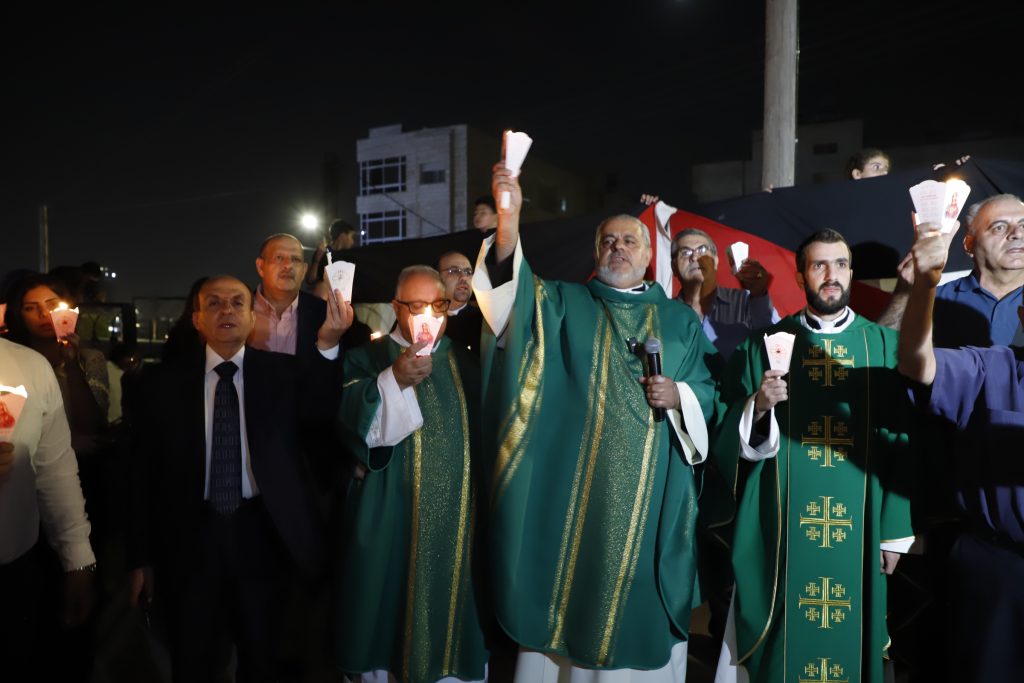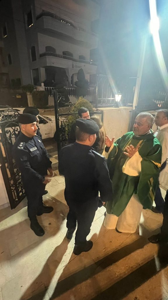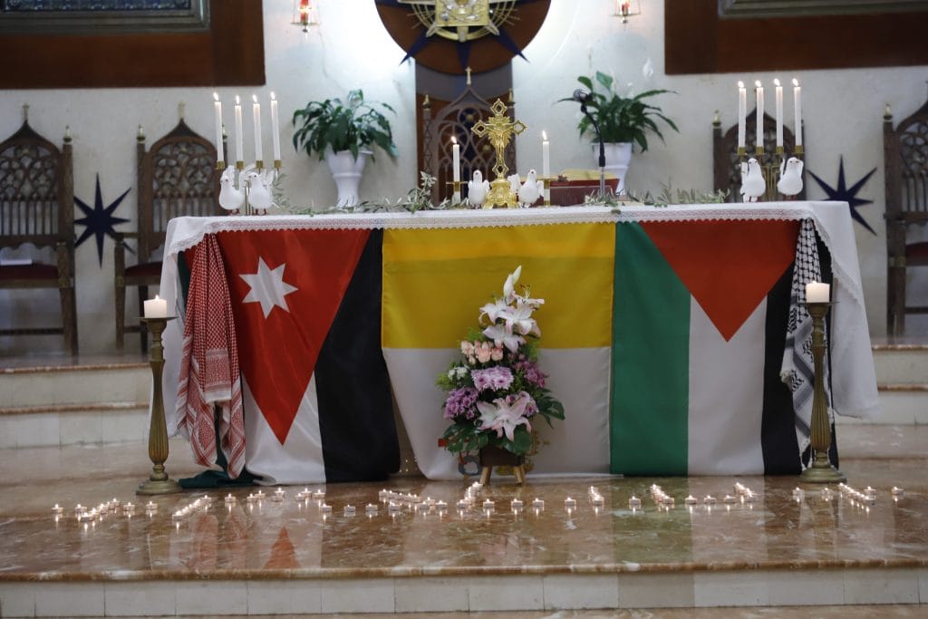 ووقف الحضور حاملين شموعًا ومرنمين أمام كنيسة قلب يسوع، متضرعين إلى العلي القدير أن يحفظ الأردن بقيادته وشعبه، بلدًا آمنًا مستقرًا، مقدرين جهود رجال الأمن الذين يرافقون الجماهير يوميًا، في تنديديهم بالعدوان. ورفعوا صلوات الترحم على أرواح الشهداء، ورنموا من أجل السلام والعدالة، طالبين من رب السلام، أن يمطر سلامه على بلاده المقدسة.