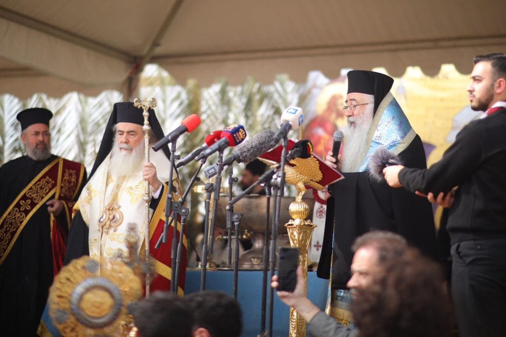 ألقى صاحب الغبطة في نهاية الصلاة كلمةً روحيّةً ووطنيّةً للمُحتَفلينَ قال فيها: من هذا المكان المقدَّس أُستعلِنَ الإيمان المسيحي وكُرِزَ بهِ في أصقاعِ المسكونةِ، من أرضِنا المقدَّسة دُعينا أبناءً للهِ لنسلُكُ باسمِهِ، دُعينا لننزعَ عنَّا الظُلماتِ الدهريَّة ونعبر للنورِ، ونغدو أبناءً للملكوتِ. فمن مياه الأُردن تتقدس كلّ الطبيعةِ، فأرضنا المقدسة اقتبلت الإله فصارت بهِ سماءً فتباركت به وبورِكت بها كل المعمورة. داعياً أبنائنا من كل العالم للحجِ والتبرك من هذا المكان المقدَّس.