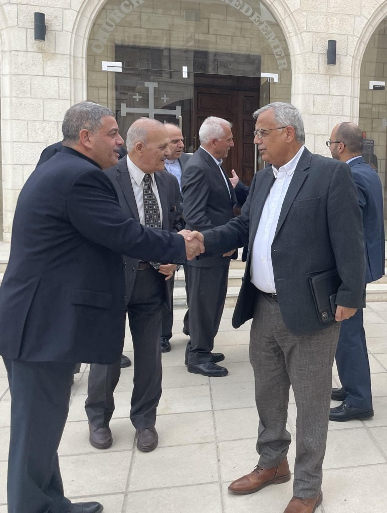 قام رئيس وبعض أعضاء الهيئة الإدارية للمجمع الإنجيلي الأردني، السبت، بزيارة تضامنية لكنيسة الفادي الإنجيلية الأسقفية في جبل عمان والتي تملك مطرانيتها في القدس المستشفى الأهلي العربي في غزة الذي تعرض لهجوم أدّى لاستشهاد المئات.