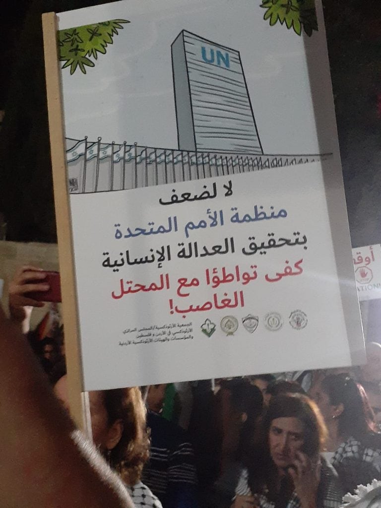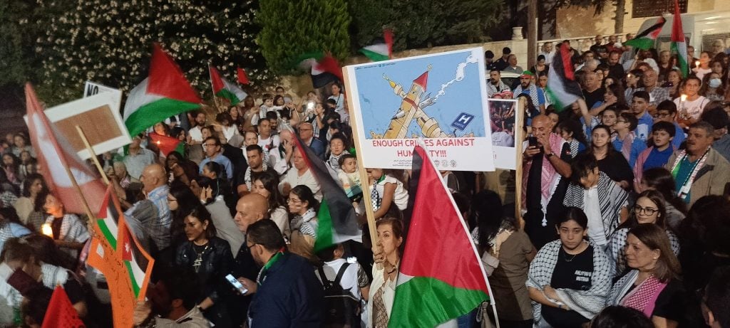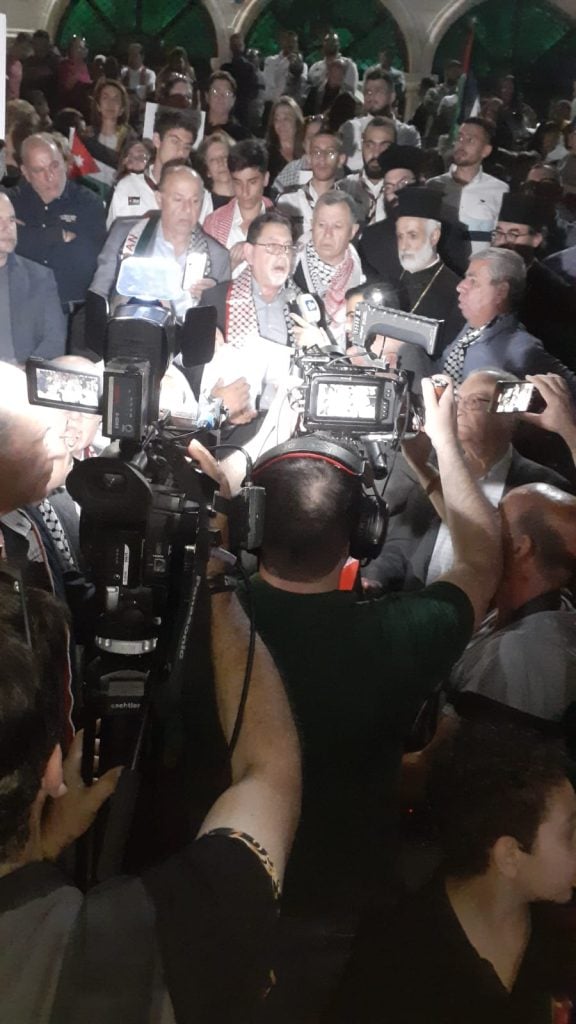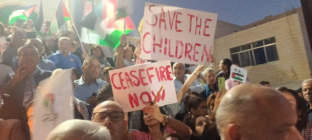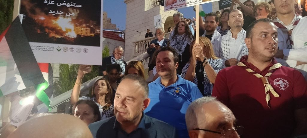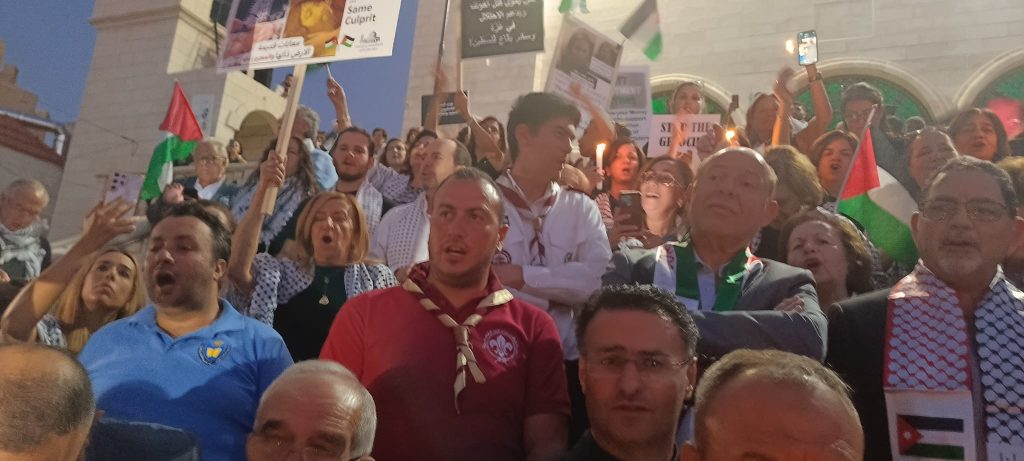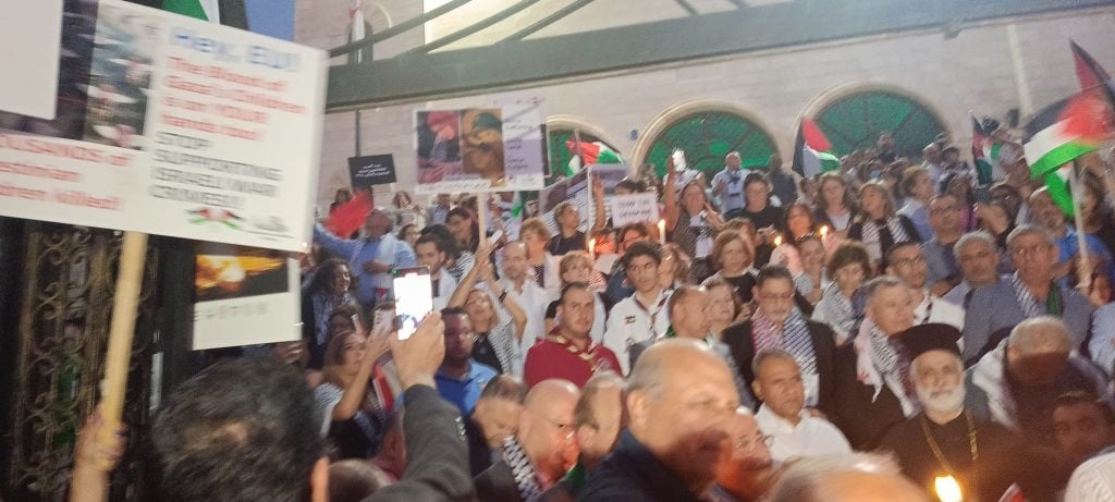 اعتصم المئات من أبناء الطائفة الأرثوذكسية من أعضاء هيئات ومؤسسات أمام الكنيسة الأرثوذكسية في الصويفية لتعبير عن رفضهم لسياسة الاحتلال الاسرائيلي ضد أبناء قطاع غزة وعمليات الإبادة الجماعية لهم واستهدافهم الاطفال والنساء بشكل كبير.