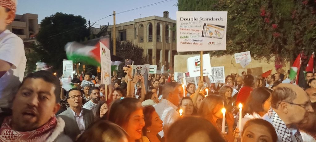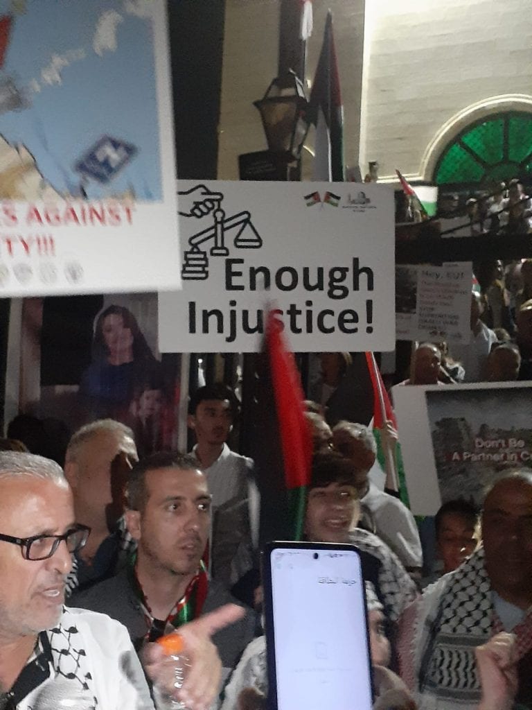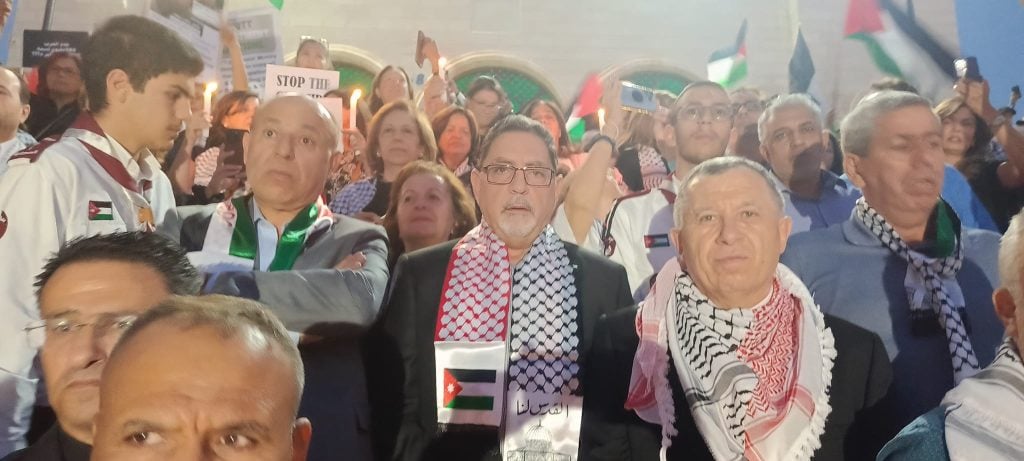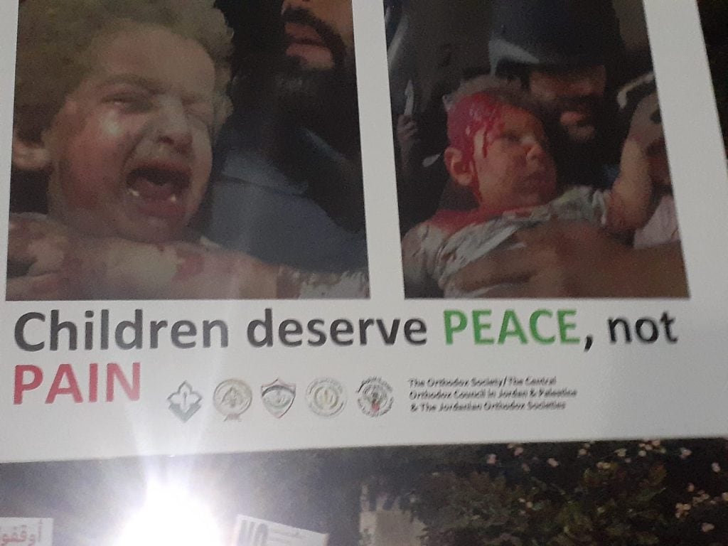 وقال رئيس المجلس الارثوذكسي في الاردن وفلسطين المهندس باسم فراج أن اسرائيل تمارس هذه الايام اباده جماعيه وسياسه وتطهير منهج لابناء غزة لتصفيه القضيه الفلسطينيه مضيفا أنها خارجه عن القوانين والمواثيق والاعراف السماويه والشرائع والقوانين الدولية بل خارجه عن قوانين الاشتباك في حاله الحرب ومعاهده جنيف واكد على رفض المعتصمين لهذه الاعمال الوحشيه واعتبارها جرائم حرب من الدرجه الاولى.