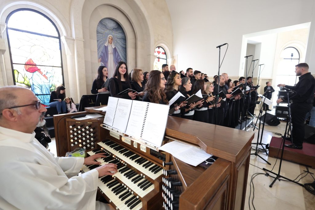 هذا وأحيت جوقة قلب يسوع الأقدس في تلاع العلي ترانيم القداس الحاشد الذي حضره شخصيات رسميّة ودبلوماسيّة، بقيادة المايسترو فارس عباسي، وعازف الأرغن الأب بشير بدر، فيما خدمة القداس طلبة المعهد الإكليريكي التابع للبطريركيّة اللاتينيّة في بيت جالا، وقدم شروحات تدشين الكنيسة وتكريس الهيكل الأب رفعت بدر، مدير المركز الكاثوليكي للدراسات والإعلام.