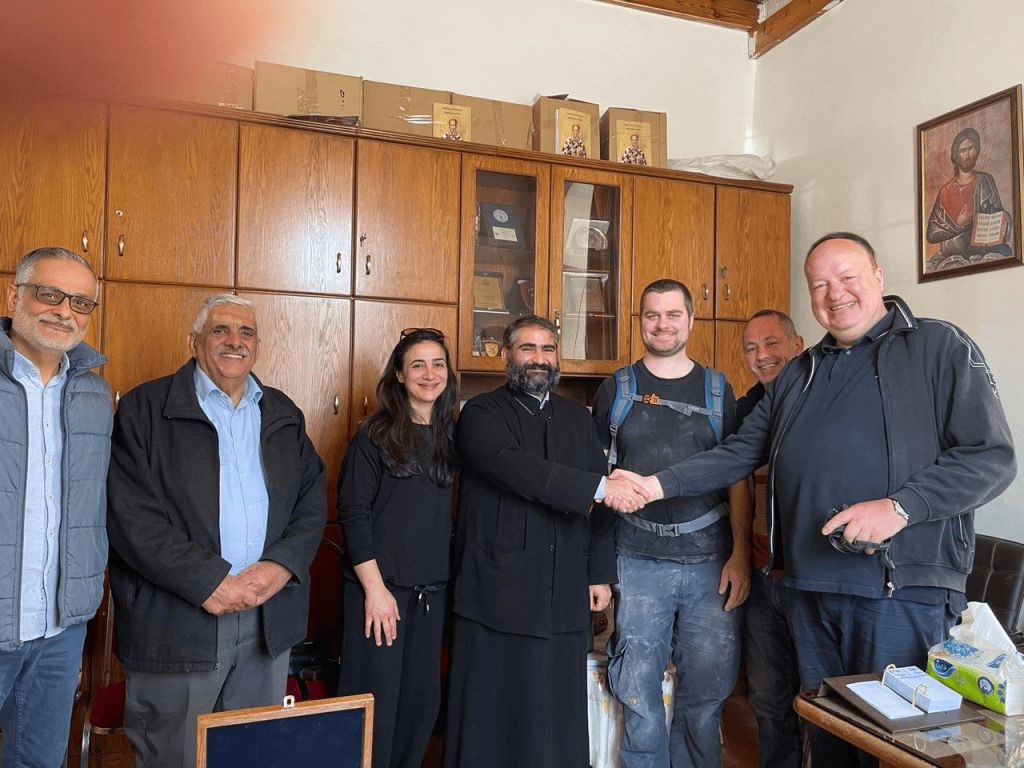 وخلال زيارة الوفد الألماني لفسيفساء مادبا التاريخية، وعد البروفيسور الألماني الكاهن الأرثوذكسي المسؤول عن الموقع الاب نيكافورس حنحان بأن يوفر له نصوص وصور الفسيفساء لاستخدامها في أي شكل من أشكال الدعاية للفسيفساء كنيسة جارجيوس (سانت جورج). حيث تحتوي على خارطة فسيفساء مشهورة عالمياً تعود إلى الأيام الأولى للمسيحيين في الأردن.