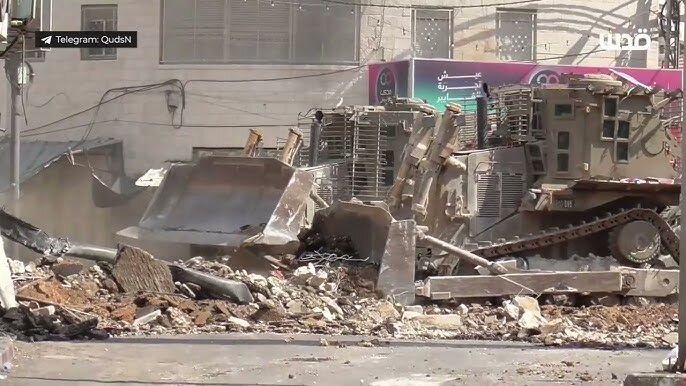 هذا ما أكده الأب لبيب دعيبس المتواجد في دير اللاتين – جنين: جرافات الاحتلال في اليوم الخامس من اجتياح الاحتلال للمدينة ومخيمها عمل على تجريف الشوارع في محيط الدير عبر جرافات ضخمة ما ادى الى تدمير كبير للبنية التحتية بالكامل اضافة الى عدد من المحلات التجارية في مبنى دير اللاتين وتعود للمواطنين.