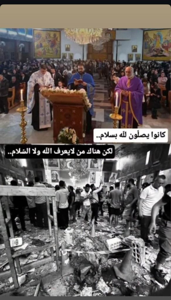 صور متداولة في المواقع الالكترونية لكنيسة “مار إلياس” بعد التفجير
