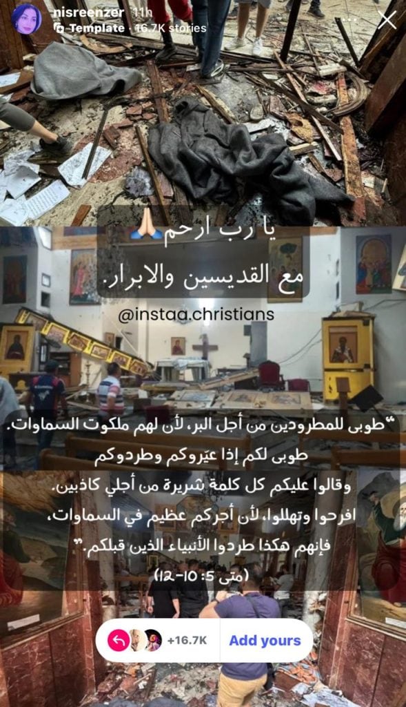 رئيس الأساقفة الأنچليكاني في القدس المطران حسام نعوم: نرفض كلّ ما يأتي وراء هذا الاعتداء من تبريرات وأيديولوجيات. ونؤكّد على أهميّة حريّة الدّيانة والعبادة للجميع.