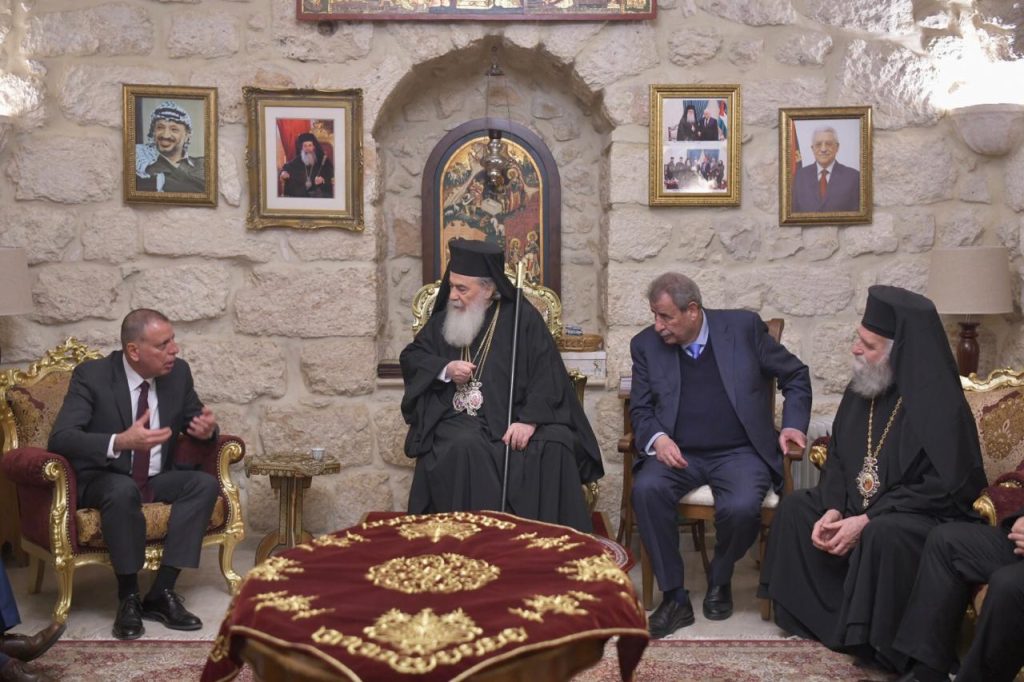 كما ثمن صاحب الغبطة رعاية فخامة رئيس دولة فلسطين محمود عباس والملكعبد الله الثاني للاعياد الميلادية وجهودهم المبذولة في الحفاظ على المقدسات الاسلامية والمسيحية.