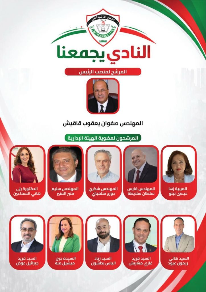 ومن جهةٍ أخرى، أعلنتْ قائمةُ “النادي يجمعنا” رؤيتَها وبرنامجَها الانتخابيَّ لإدارةِ النادي الأرثوذكسي، مؤكّدةً سعيَها إلى إحداثِ نقلةٍ نوعيّةٍ في مختلفِ جوانبِ العملِ الإداريِّ والخدميِّ داخلَ النادي، بما يواكبُ تطلّعاتِ الأعضاءِ ويحافظُ في الوقتِ ذاتهِ على الإرثِ العريقِ لهذه المؤسّسةِ.