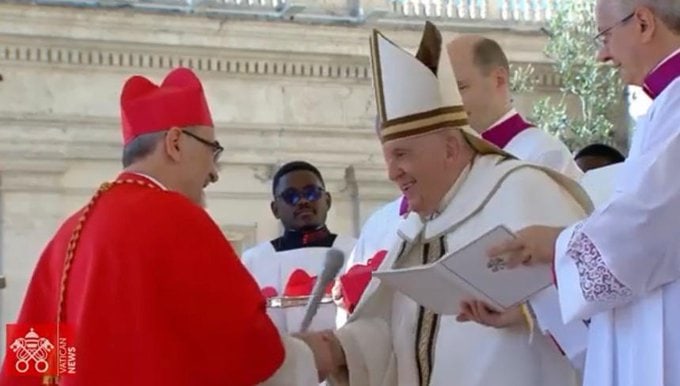 منح البابا فرنسيس، يوم السبت، بطريرك القدس للاتين بيير باتيستا بيتسابالا، الرتبة الكارديناليّة، خلال احتفاليّة دينيّة جرت في ساحة القديس بطرس في حاضرة الفاتيكان، بحضور وفد رسمي أردني وفلسطيني، إلى جانب وفود كنسيّة وشعبيّة من سائر مناطق الأرض المقدّسة. الصور هنا