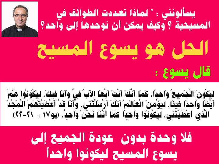 اقرأ أيضاً: صعوبة الوحدة المسيحية وضرورة تعريب قيادة الكنائس