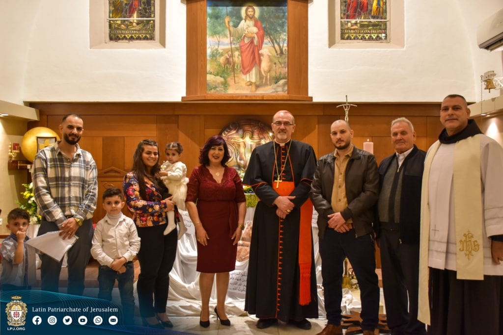 مساءً منح غبطته سرّ المعمودية إلى الطفلة سيلينا ميخائيل، بحضور عائلتها الذين يعود أصلهم إلى غزة وهم من سكان أريحا حالياً.