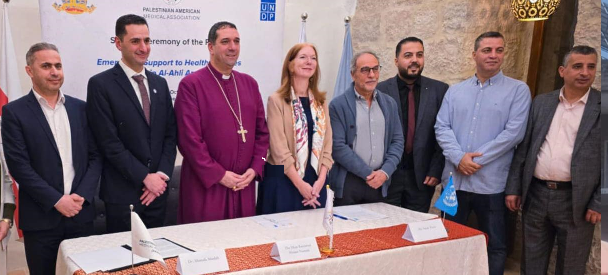 كما قام المطران حسام نعوم بتوقيع اتفاقيّة تعاون بين المستشفى الأهليّ العربيّ في غزّة (بواسطة مطرانيّة القدس الأسقفيّة) ومؤسّسة پاما الفلسطينيّة الأمريكيّة وبرنامج التّنمية للأمم المتّحدة في كاتدرائيّة القدّيس جورج في القدس.