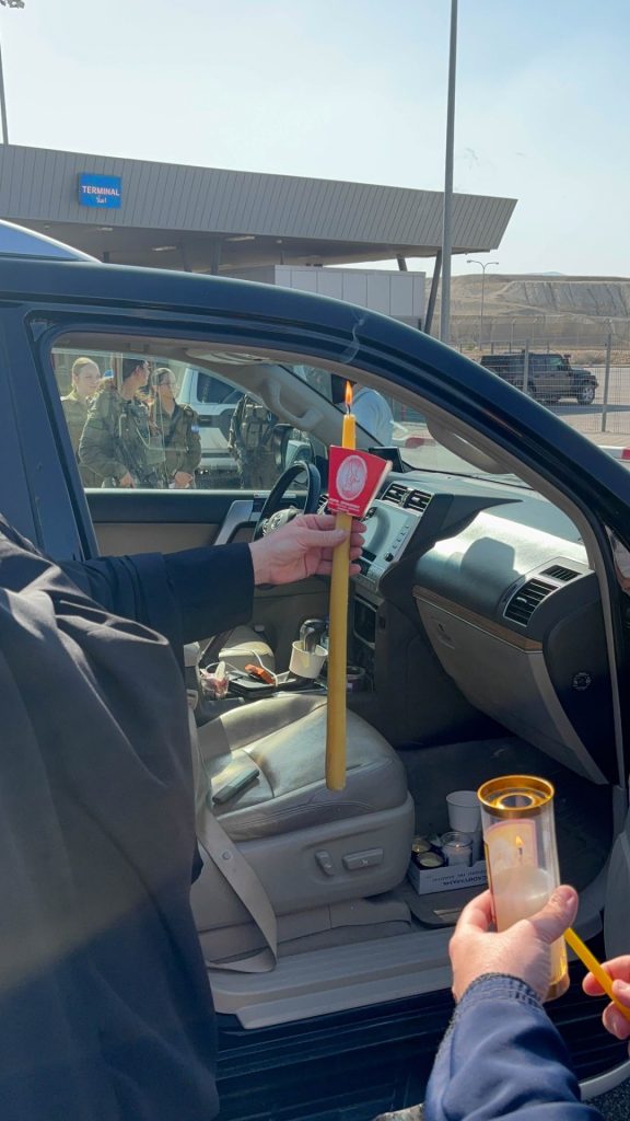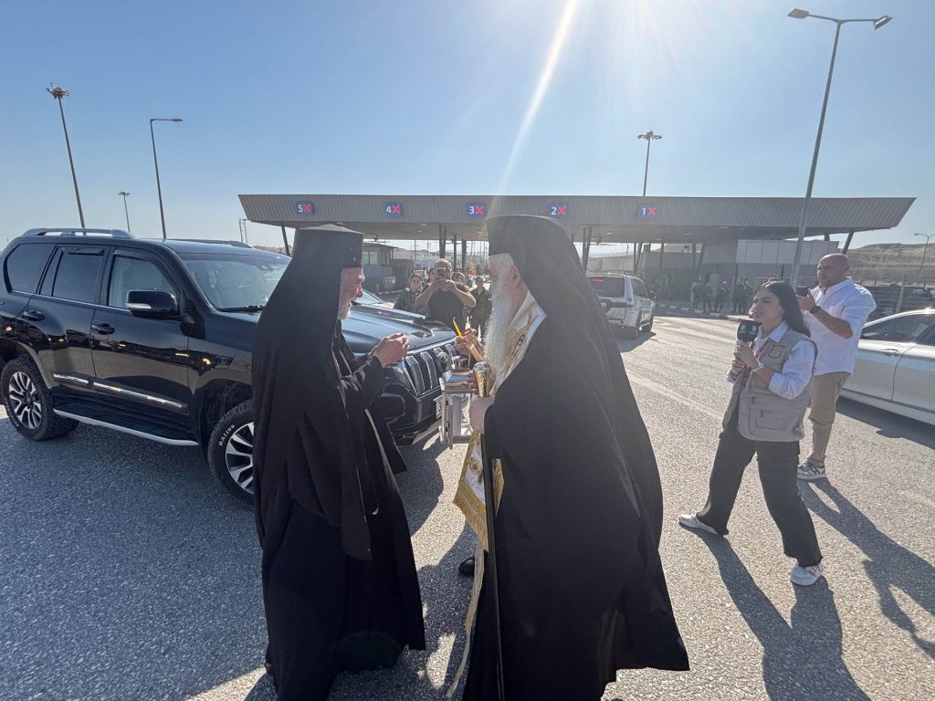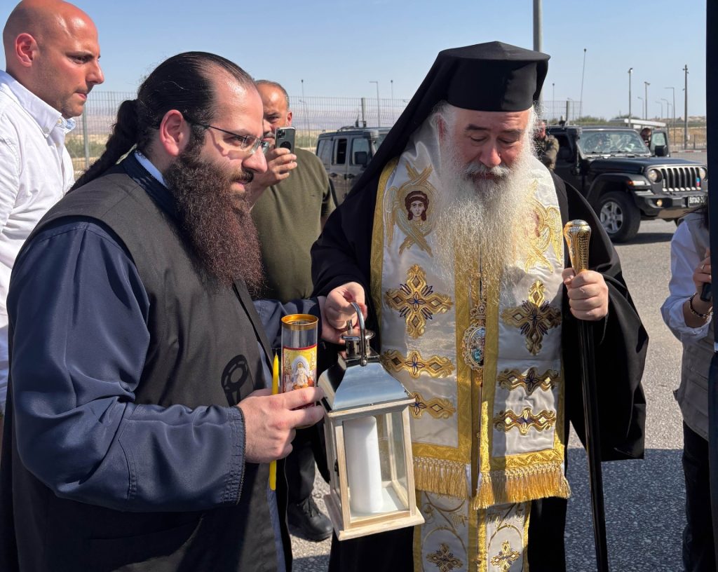 تسلّم المُطران خريستوفوروس النور المقدس من الأرشمندريت برثلماوس مَسؤول التشريفات في البطريركية، مِن جسر المَلك الحُسين لتوزيعه على كنائس الأردن.