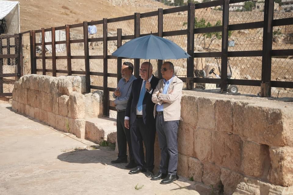 وتضرّعَ سيادتُه أن يحفظَ الرّبُّ الأردنّ، قيادةً وشعبًا مع جيشِنا العربيّ وأجهزتِنا الأمنيّةِ السّاهرةِ على حمايةِ أردنّنا الغالي، كما دعا لتوقُّفِ الحَربِ الظّالمةِ على غَزة وأهلِها. مقدِّمًا سيادَتُه الشّكرَ المقرونَ بالمحبّةِ لوزارةِ السّياحةِ والآثار ممثَّلَةً بمعالي الوزيرِ السّيّدِ مكرم القيسي ولعطوفةِ أمينِ عامِّ الوزارةِ السّيّد عماد حجازين ومساعدِ الأمينِ العامّ السّيّد هشام الشّخاترة والسّيّدِ ثائر عياصرة مديرِ سياحةِ جرش ولجميعِ الفرقِ العاملةِ على تعاونِهم في إقامةِ الصّلاةِ في هذا الموقعِ الأثريّ الرّوميّ.