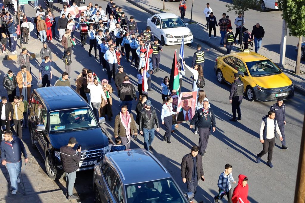 مَحبةً للمَلك وإحتراماً لمكانتهِ العَالمية وبمناسبةِ عيدِ ميلادهِ، عَبرت كشافة ومُرشدات كنيسة القديس نيقولاوس للرّوم الأرثوذكس (ماركا) بإستعراضٍ مُوسيقي كَبير رافقه مَسير كشفي في قلبِ منطقةِ ماركا ومَركزها بحضور قدس الأرشمندريت أثناسيوس قاقيش والأب صفرونيوس حنا راعي الكنيسة ومندوب عطوفة متصرف لواء ماركا حسن العريدي ومدير منطقة لواء ماركا المهندس نويران الهدبان وأعضاء المجلس المحلي المختار عواد قاقيش والسيد محمود الجرادات والدكتور حمزة مبيضين وسكرتير القطاع الكشفي والإرشادي الأهلي القائد خليل جميل وأبناء الكنيسة الأرثوذكسية في ماركا.