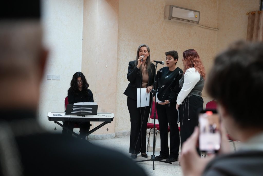 وقد شارك الحضور في ترديد مجموعة من الترانيم للمقامات الموسيقية الغربية والشرقية. وفتحت ترنيمة عذراء يا ام الإله التي رددها الحضور بقيادة الاب عماد البواب، نافذة روحية موسيقية نحو السماء. وقدمت كذلك جوقة قسم الموسيقى في الجامعة الأردنية بقيادة الدكتورة هبة عباسي نماذج من الترانيم الغربية.