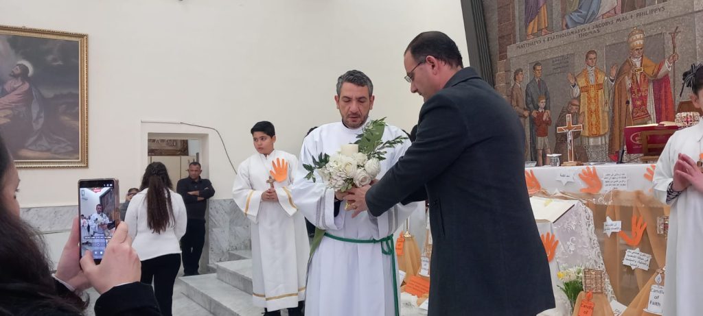 شارك الشماس الإنجيلي الجديد ديفيد سوتجيو في خدمة المذبح خلال قداس الصباح وقداس بعد الظهر، معاونًا كاهن الرعية في كلا الاحتفالين، ليؤكد حضوره الدائم في حياة الجماعة الإيمانية. وقد عُيّن الشماس ديفيد شماسًا في هذه الرعية لمدة ستة أشهر، كمرحلة تحضيرية نحو رسامته الكهنوتية، ليكون علامة رجاء متجدد وزرعًا جديدًا في كرم الرب، يخدم المؤمنين بروح التواضع والمحبة.