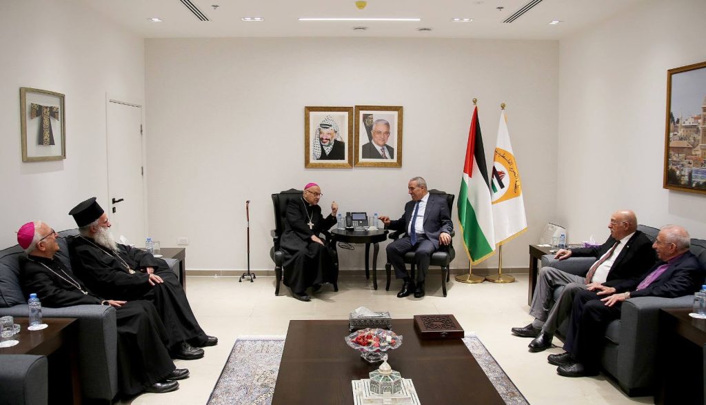 وقد أكَّدَ المُطران اللاتيني وليم الشوملي في تصريحٍ خاصٍّ لـ ملح الأرض أنَّ الوفد الكنسيّ زار حسين الشيخ في مكتبه يوم الاثنين لتهنئته بتسلُّم منصب نائب الرّئيس، مُضيفًا: “تحدَّثنا عن أبرز القضايا الرّاهنة، منها الاعتداء على كنيسة العائلة المُقدّسة في غزّة من قبل الجيش الإسرائيليّ، واعتداء المُستوطنين على أراضي بلدة الطيبة، أكَّد لنا الشّيخ على أهمّيّة الوجود المسيحيّ في فلسطين، قائلًا إنَّ هذا الوجود لا يُقاس بالأرقام، بل بأصالة المسيحيّين كجزءٍ لا يتجزَّأ من النّسيج الوطنيّ الفلسطينيّ”.