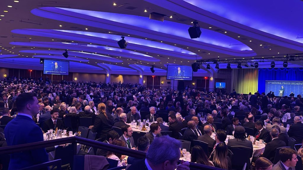 وخلال الإفطار، تحدّث الرئيسُ الأمريكيّ دونالد ترامب عن أهميّةِ الإيمانِ المسيحيّ في صياغةِ الدولةِ الأمريكيّة والهويّةِ الوطنيّة، مشدّدًا على الأثرِ العميق للكتابِ المقدّس في ترسيخِ مفاهيمِ الحرّيّةِ الدينيّة والكرامةِ الإنسانيّة.