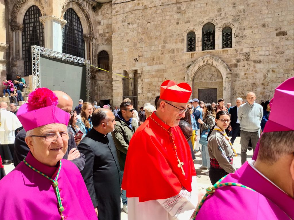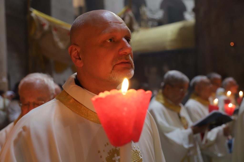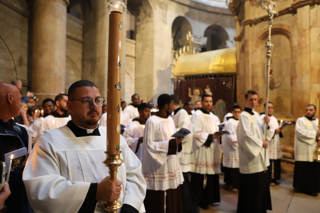 ترأس غبطة الكاردينال بييرباتيستا بيتسابالا، بطريرك القدس للّاتين، برفقة الأساقفة والكهنة والمؤمنين قُدّاس خميس الأسرار في كنيسة القيامة صباح يوم الخميس ثمَّ أُقيمَتِ الدّورة حول القبر المُقدّس.