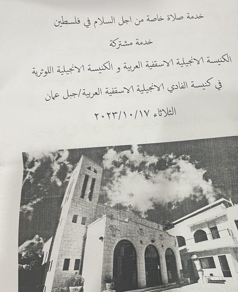 ولكن رغم الصلاة والصوم في فلسطين والاردن وامكان اخرى، إلا ان يد الشر امتدت في نفس الامسية الى مستشفى الاهلي (المعمداني سابقًأ) الذي، تديرة الكنيسة الاسقفية، في مجزرة حصدت مئات الارواح وهزت المنطقة.