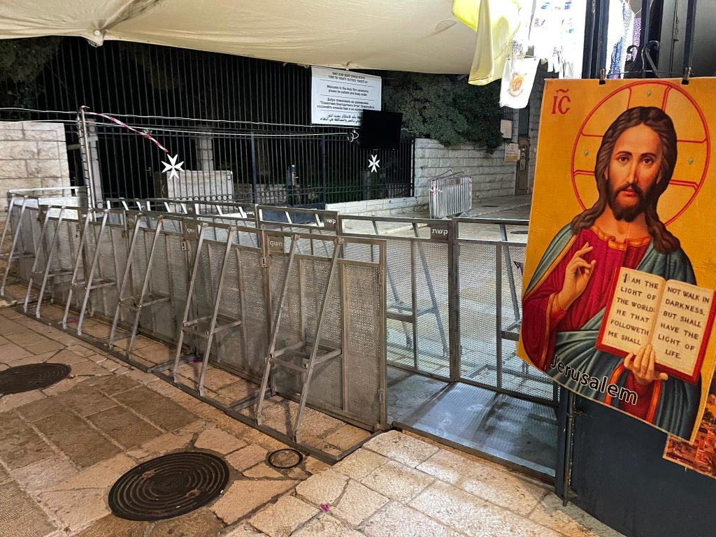 الاحتلال يضع حواجز حديدية في محيط كنيسة القيامة للتضييق على المسيحيين في سبت النور-صور