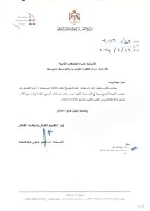 خاص- ملح الأرض طلب وزير التعليم العالي والبحث العلمي عزمي محافظة من رؤساء الجامعات الأردنية وعمداء الكليات الجامعية والجامعة المتوسطة