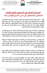 استنكرت الهيئة الإسلامية المسيحيّة لنصرة القدس والمقدّسات تصريحات رئيس حكومة الاحتلال بنيامين نتنياهو، التي زعم فيها حرص حكومته على حماية