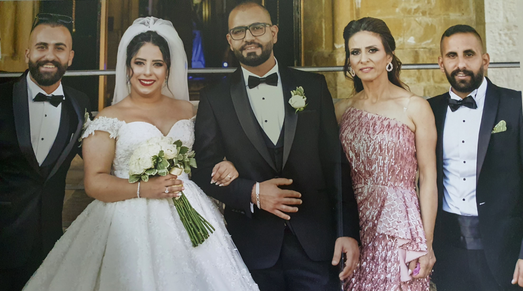 At the church door, before the white ribbon was untied, and each couple was preparing to line up in order for their turn at the wedding Nirfat felt a pang in her chest. Her eyes filled with tears, and she struggled not to cry and spoil the serenity of a wedding that had been long and repeatedly postponed. She gathered her wounds and held herself together. She did not want to direct attention towards her, her only concern at that moment was her firstborn (Ibrahim) and completing his wedding, and spreading joy among all family and friends.