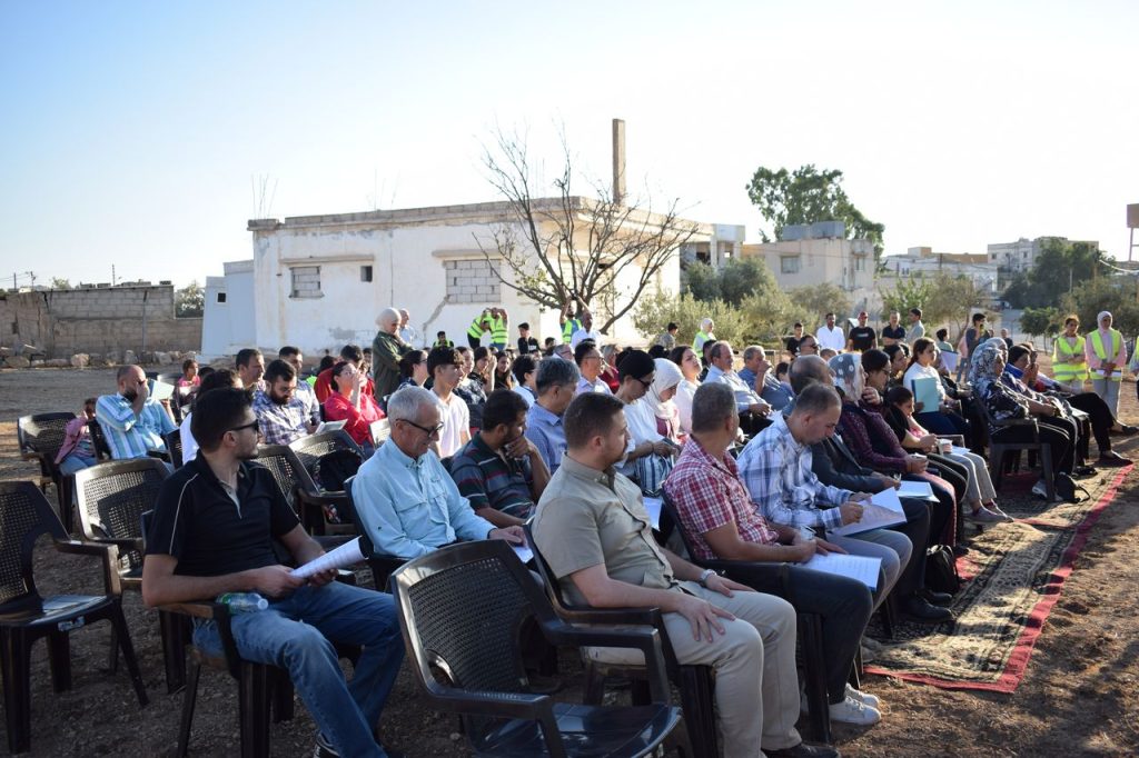 The event was organized through the Ma’alim Betahki Initiative, coordinated by Sharaf Harhaash under the auspices of the Ain Bani Hassan Charitable Association, with support from the New Rehab Municipality and the approval of the Mafraq Antiquities Directorate and the Ministry of Tourism.